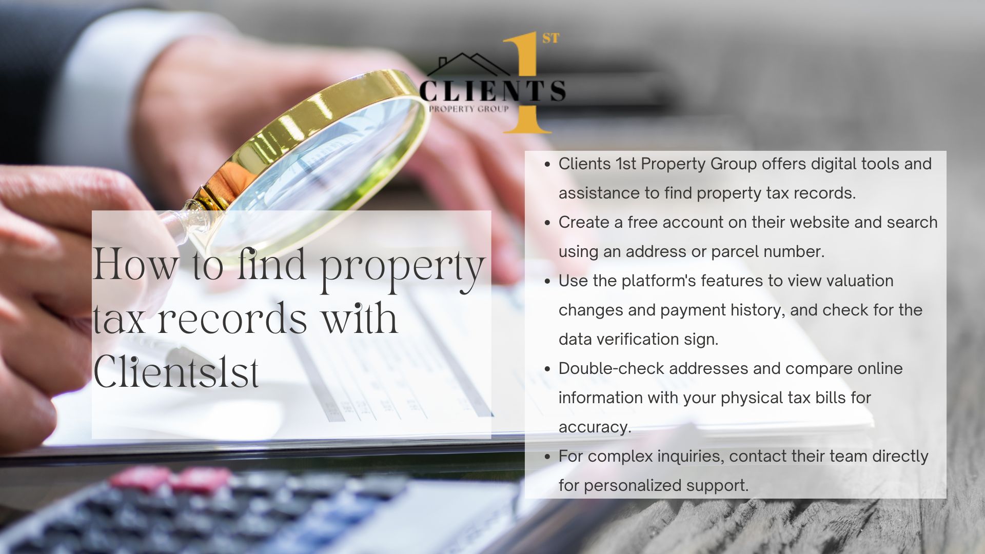 Double-check addresses against county maps to avoid mismatches. Bookmark frequently accessed pages for quick reference. “Always compare the website’s confirmation symbol with your physical tax bills,” advises a Clients 1st representative.