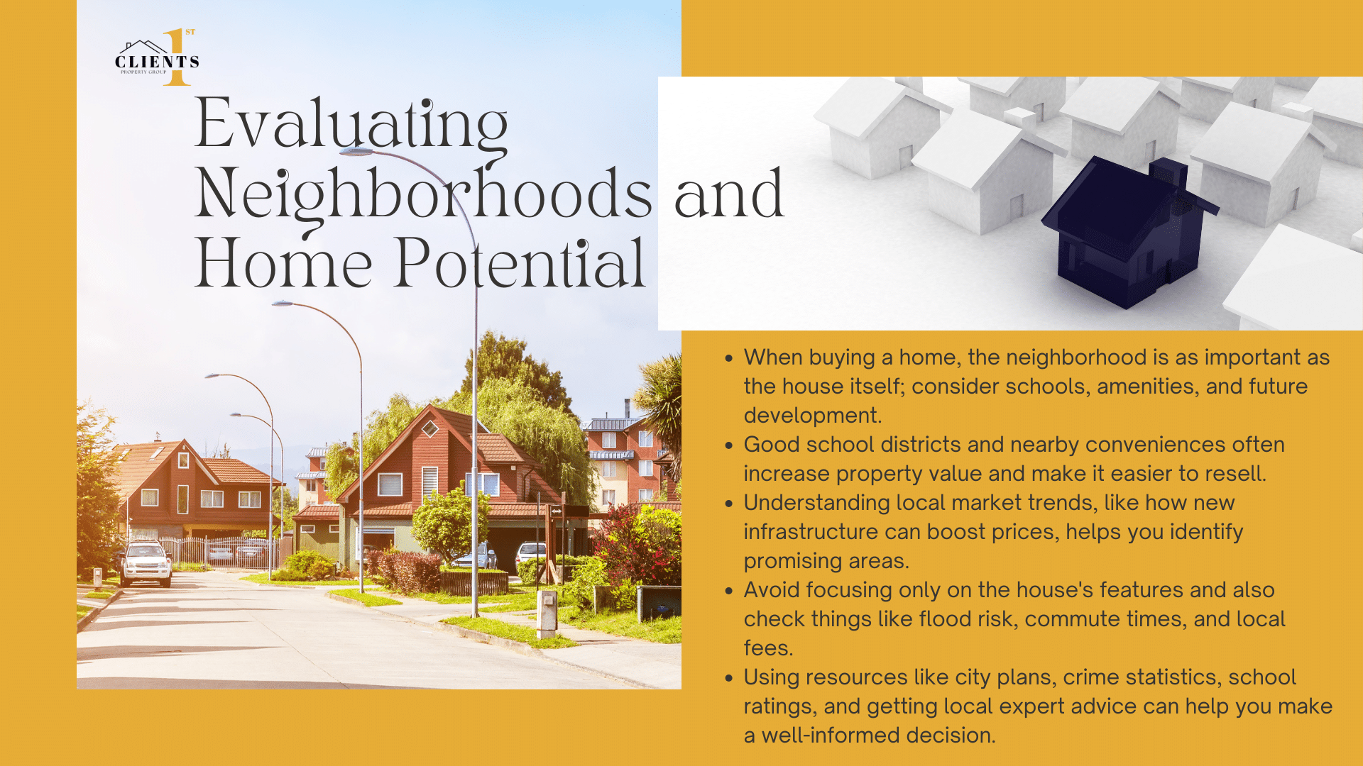 A recent study by RealEstate Insights shows buyers who define priorities early reduce negotiation timelines by 34%. Clients1st agents use this data-driven approach to help clients secure properties that meet both current and future needs.