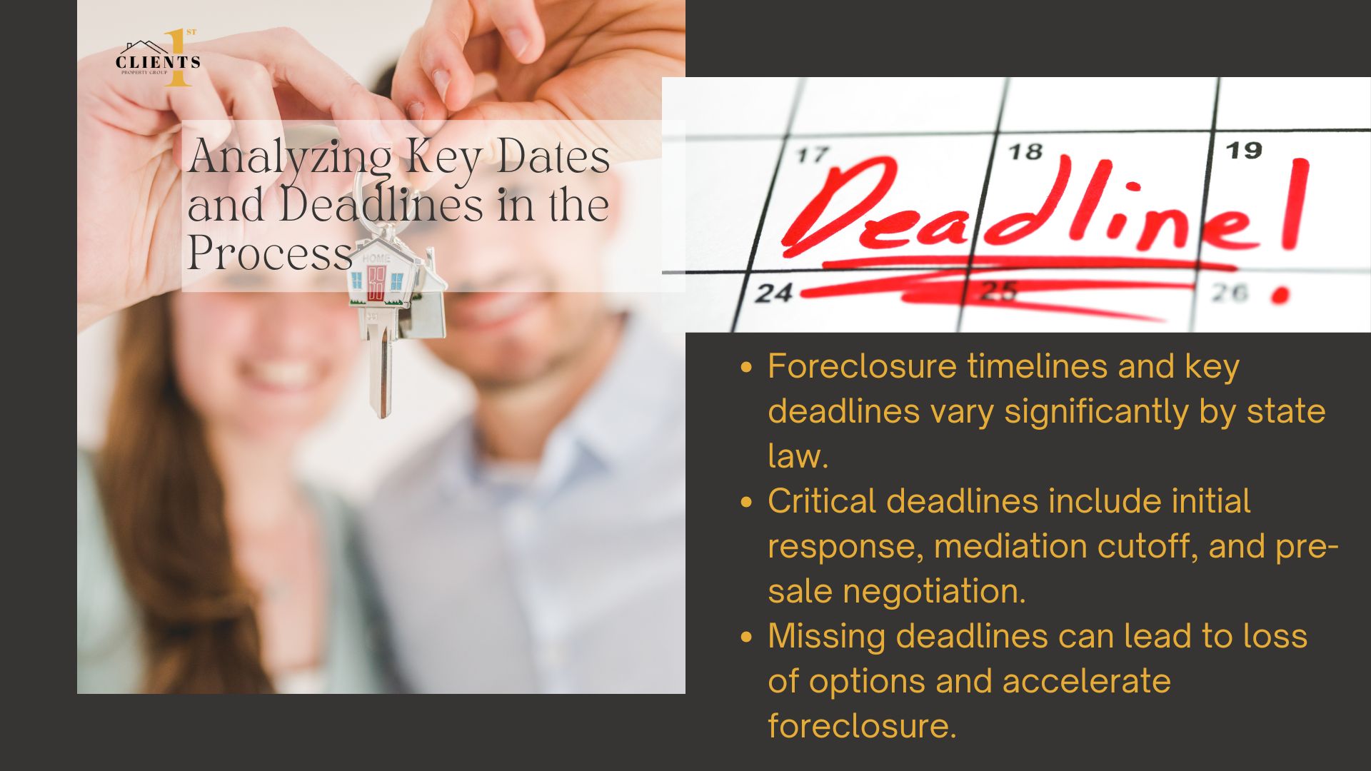 The financial strain often creates emotional stress and impacts credit scores for 7+ years. Homeowners risk losing their property through public auctions if resolutions aren’t reached. Clients 1st Property Group notes: