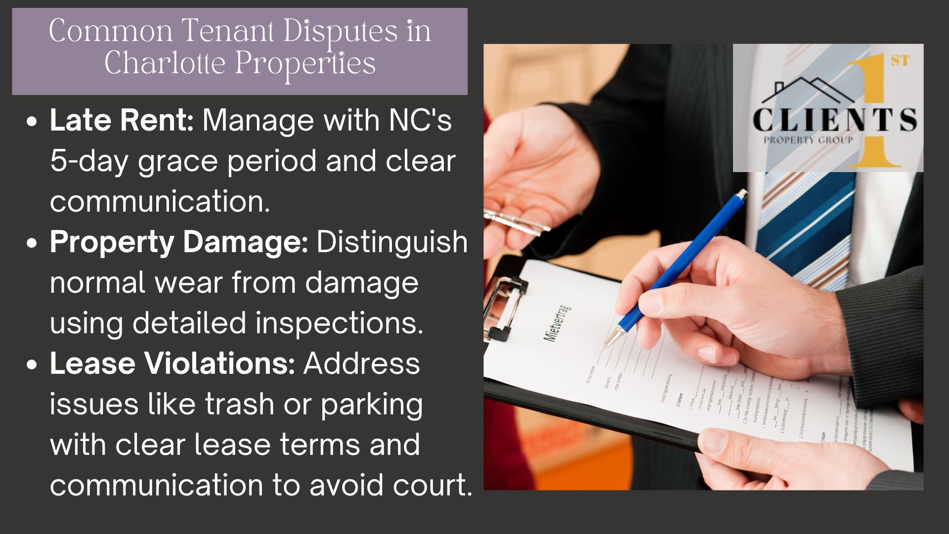 How Clients 1st Property Group Resolves Charlotte Tenant Disputes