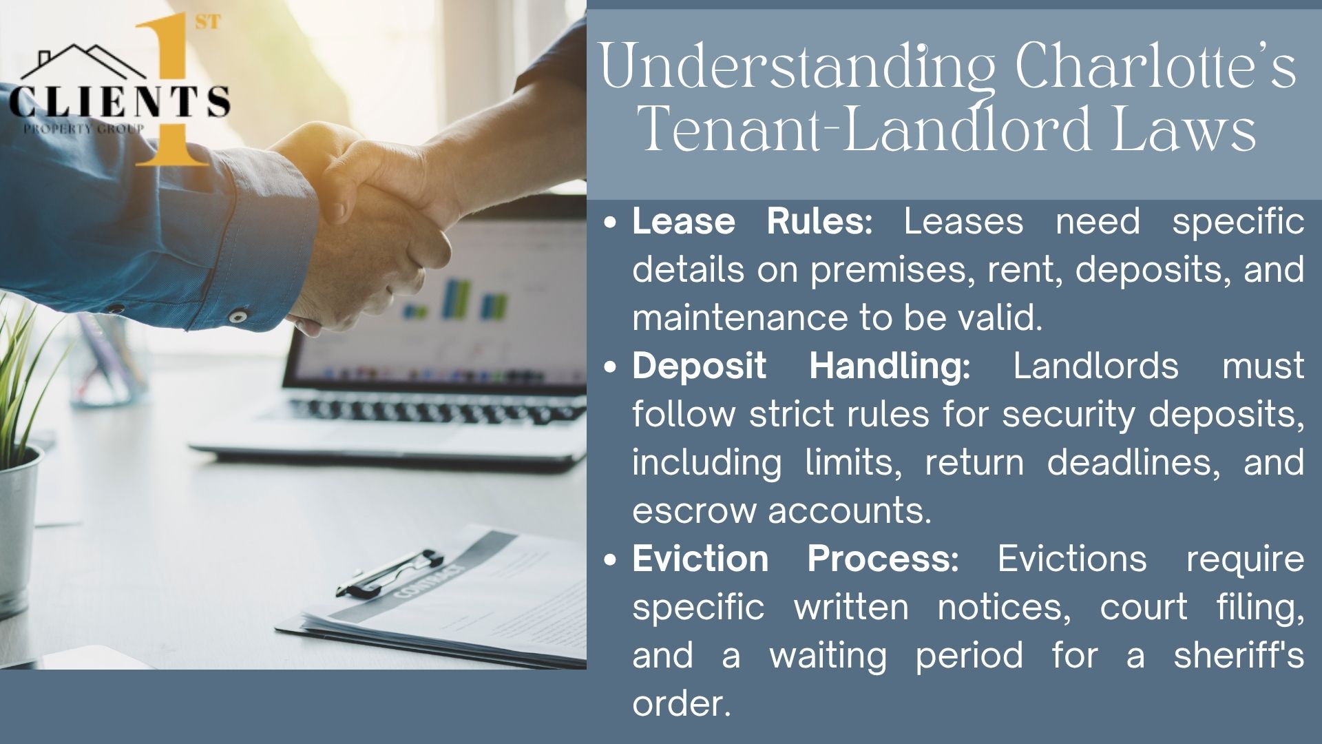 What makes Clients 1st Property Group stand out in managing rental disputes? We have over 30 years of experience with Charlotte’s housing courts and mediation. We know how small mistakes in paperwork or talking can lead to big legal fights.