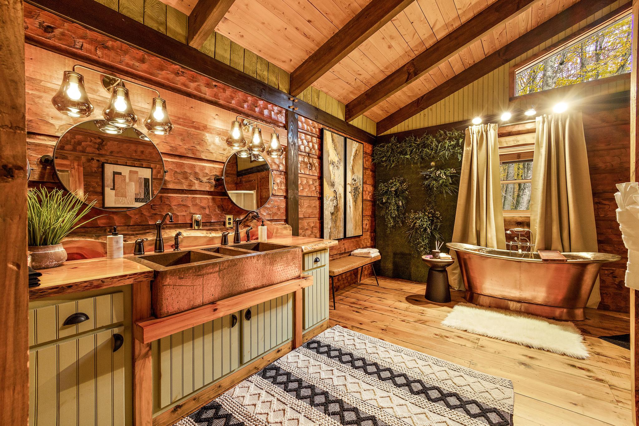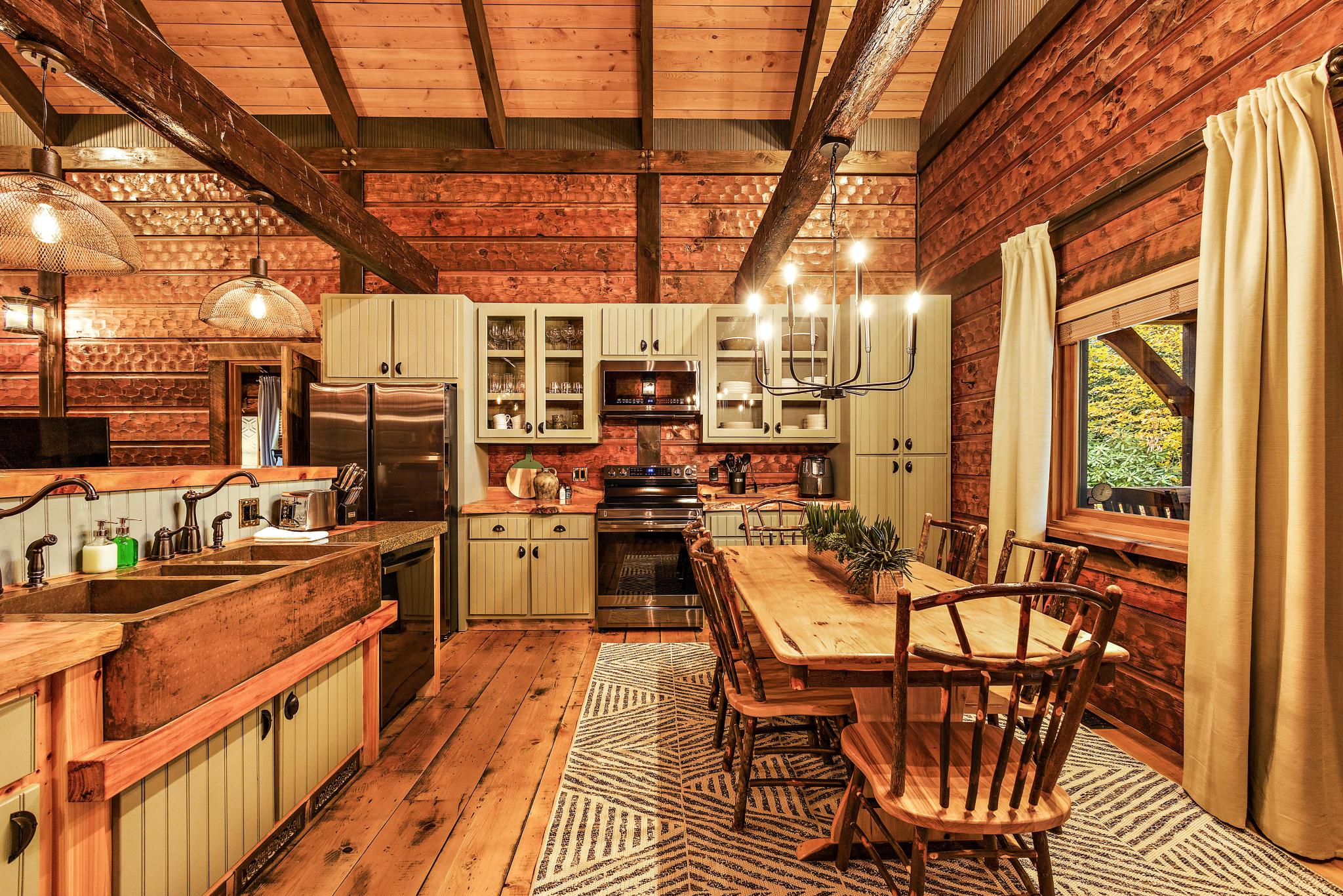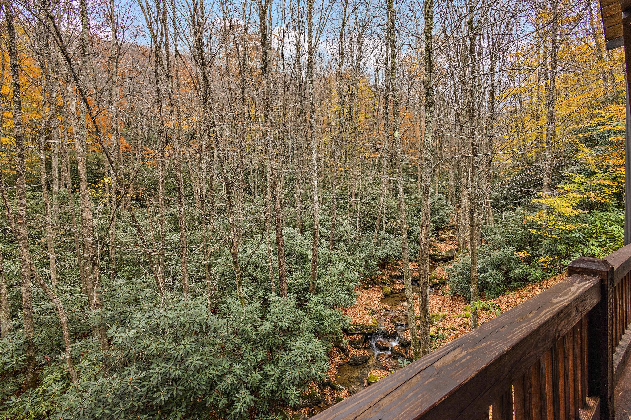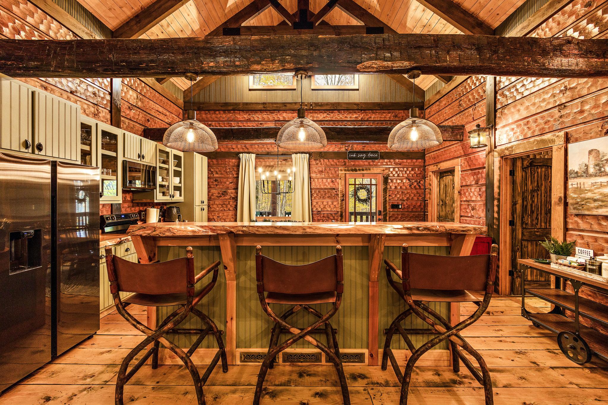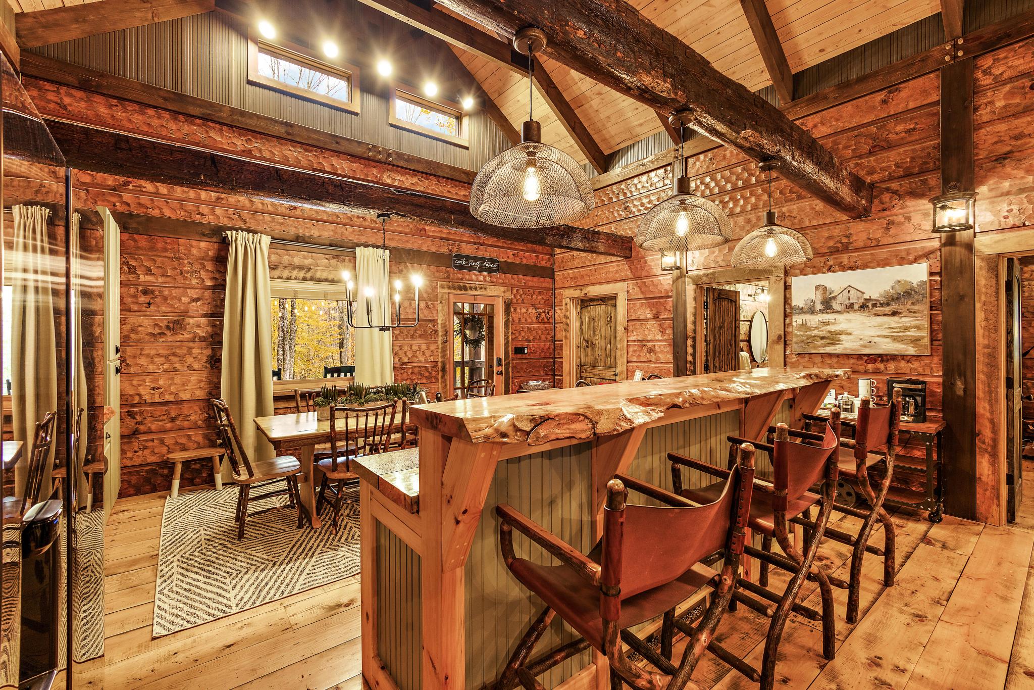 Experience mountain living at its finest in this beautifully crafted log home on a wooded 1 acre homesite in Beech Mountain. Currently operating as a successful, fully-furnished Airbnb, this turnkey property offers an effortless transition for investors, second-home buyers, or those seeking a serene primary residence. The warm and inviting interior features an open floor plan with vaulted ceilings and a dramatic floor-to-ceiling stone wood-burning fireplace as the focal point of the living room. The kitchen is thoughtfully designed with a live-edge wood island countertop, stainless steel appliances, a large copper sink, and high-end finishes throughout, providing both function and mountain lodge charm. The spacious primary suite offers direct access to the back deck and includes a luxurious en-suite bath featuring a freestanding copper soaking tub and double copper vanities. Secondary bedrooms are equally inviting, each with vaulted ceilings and ample space for guests. Outdoor living is where this home truly shines. A stunning second wood-burning fireplace anchors the expansive covered deck, great for gathering, dining, or simply relaxing among the trees. Enjoy the hot tub, porch swing, and multiple seating areas that make this home a year-round retreat. The wooded setting offers privacy and a true mountain escape, while still being convenient to Beech Mountain attractions, skiing, hiking, and shopping. Whether you continue its proven rental performance or keep it as your own getaway, this home offers timeless style, comfort, and an unforgettable setting. Schedule your showing today!