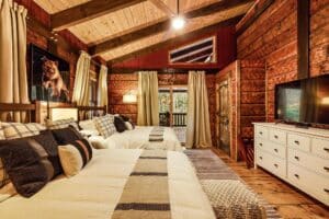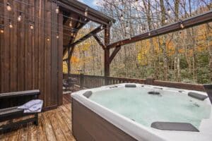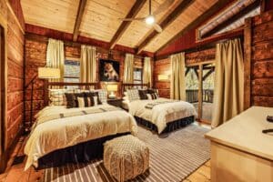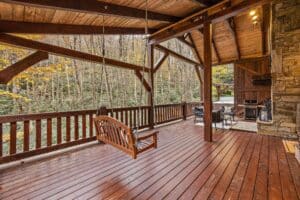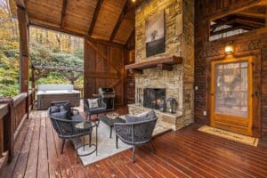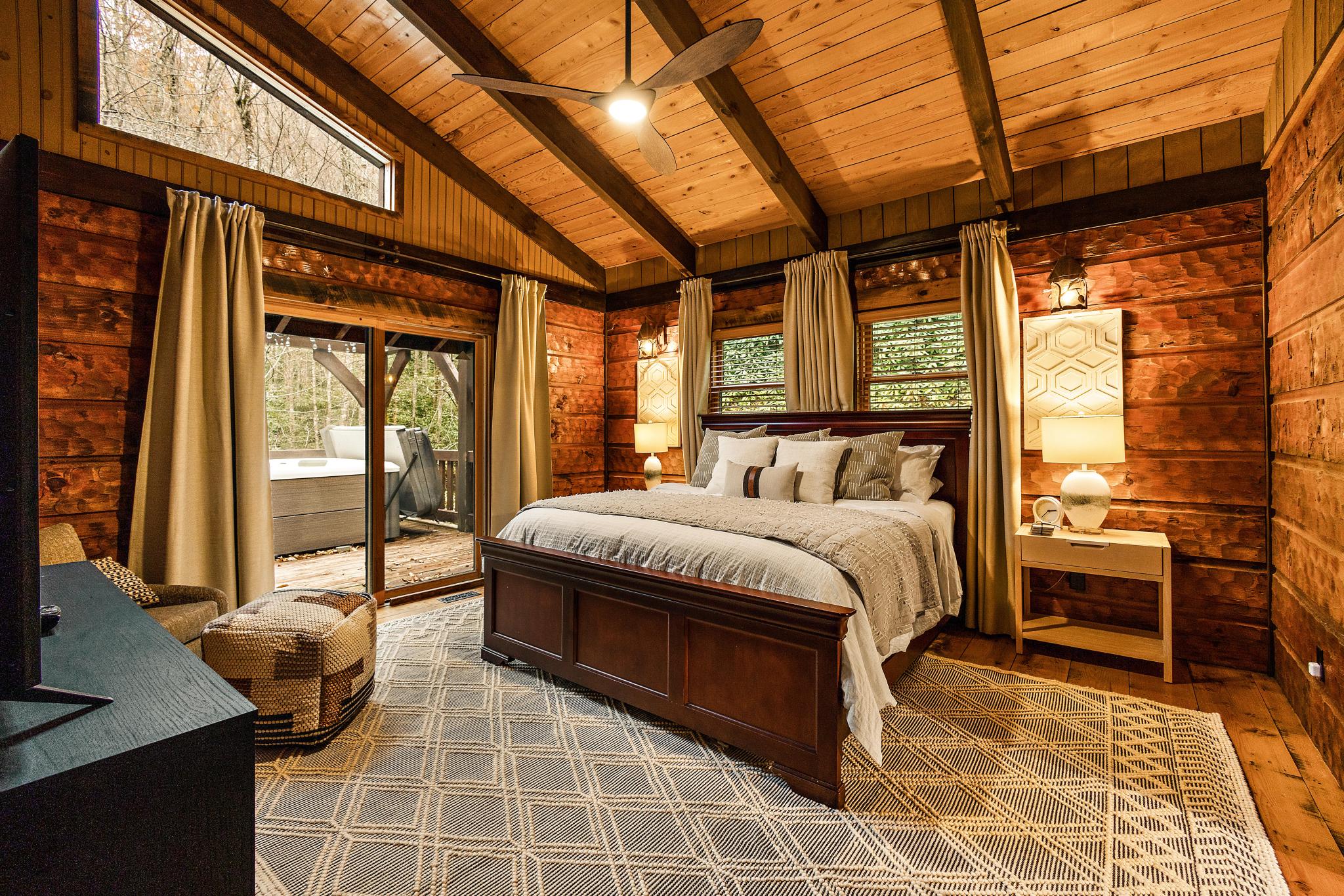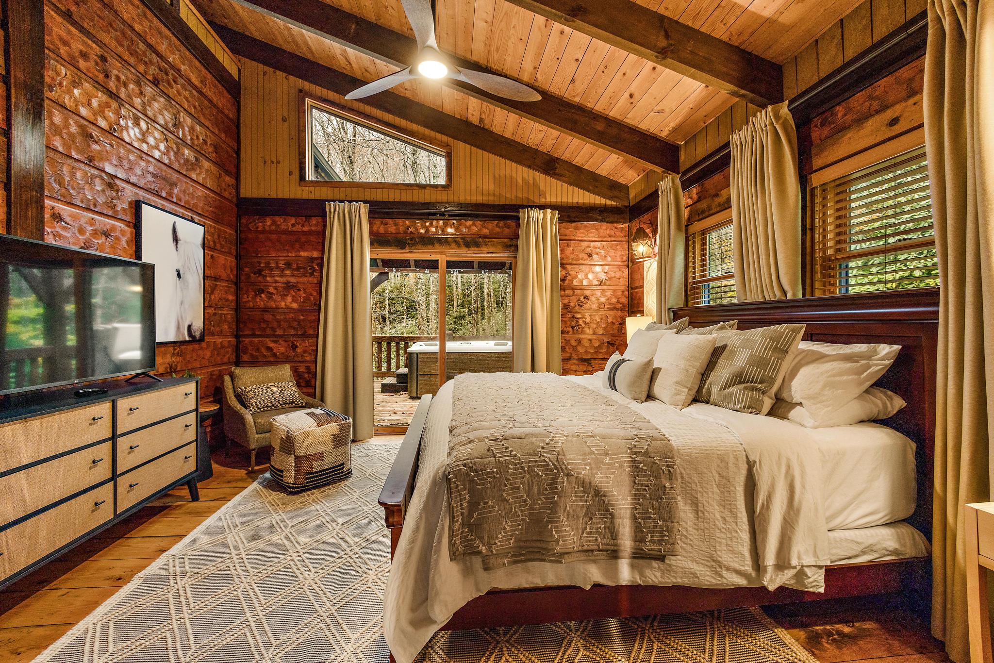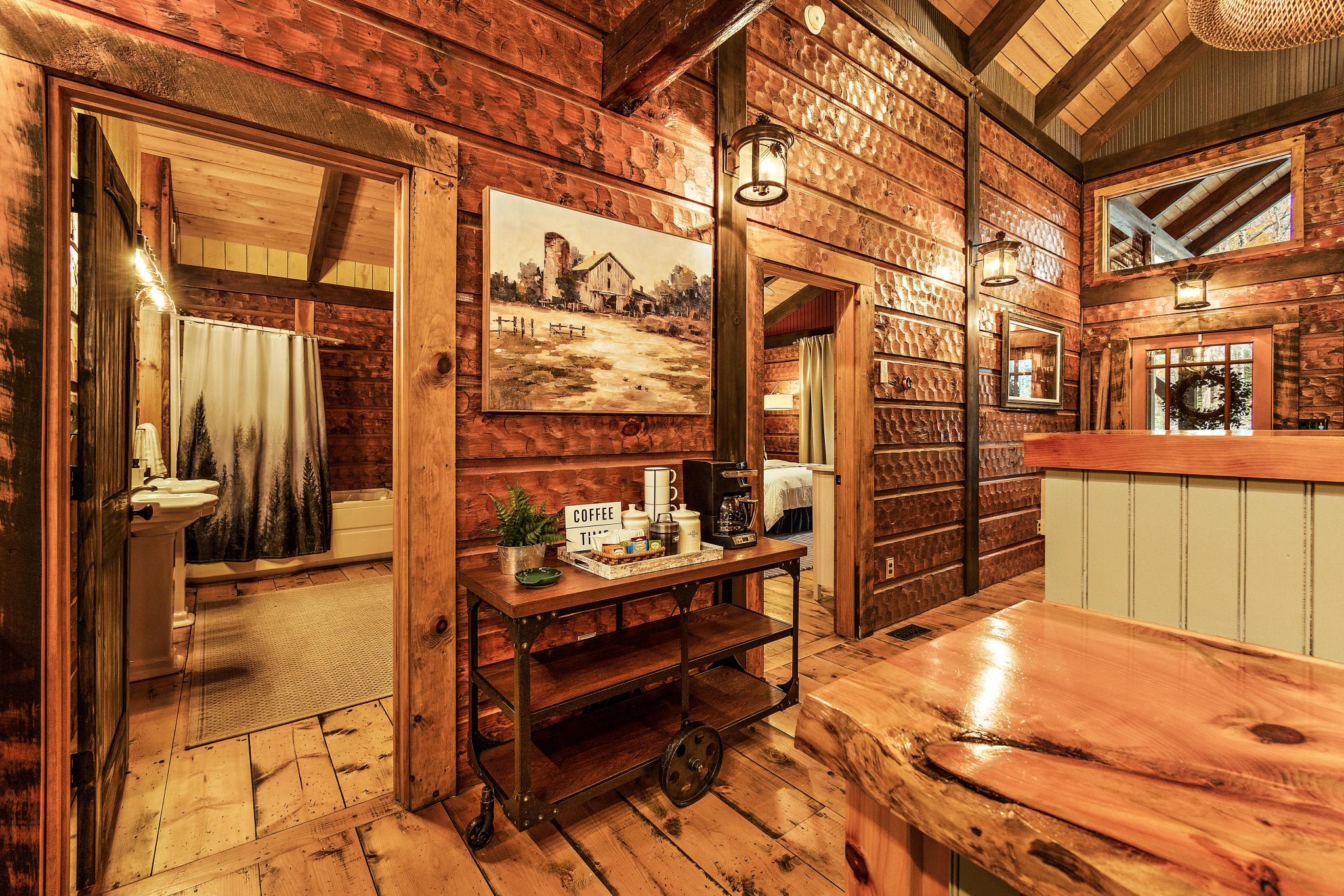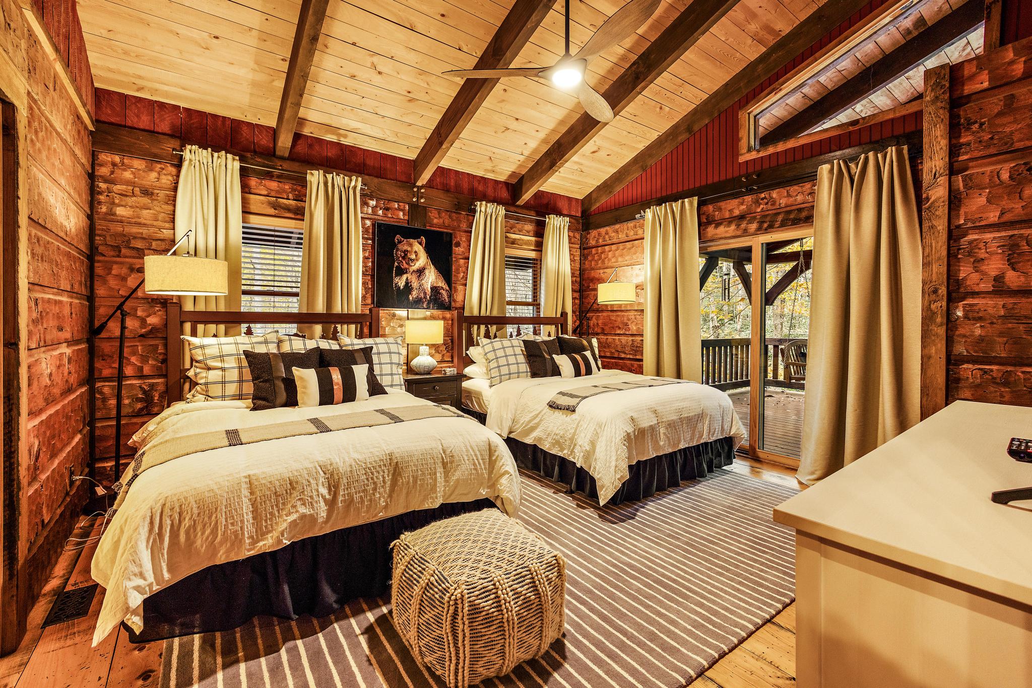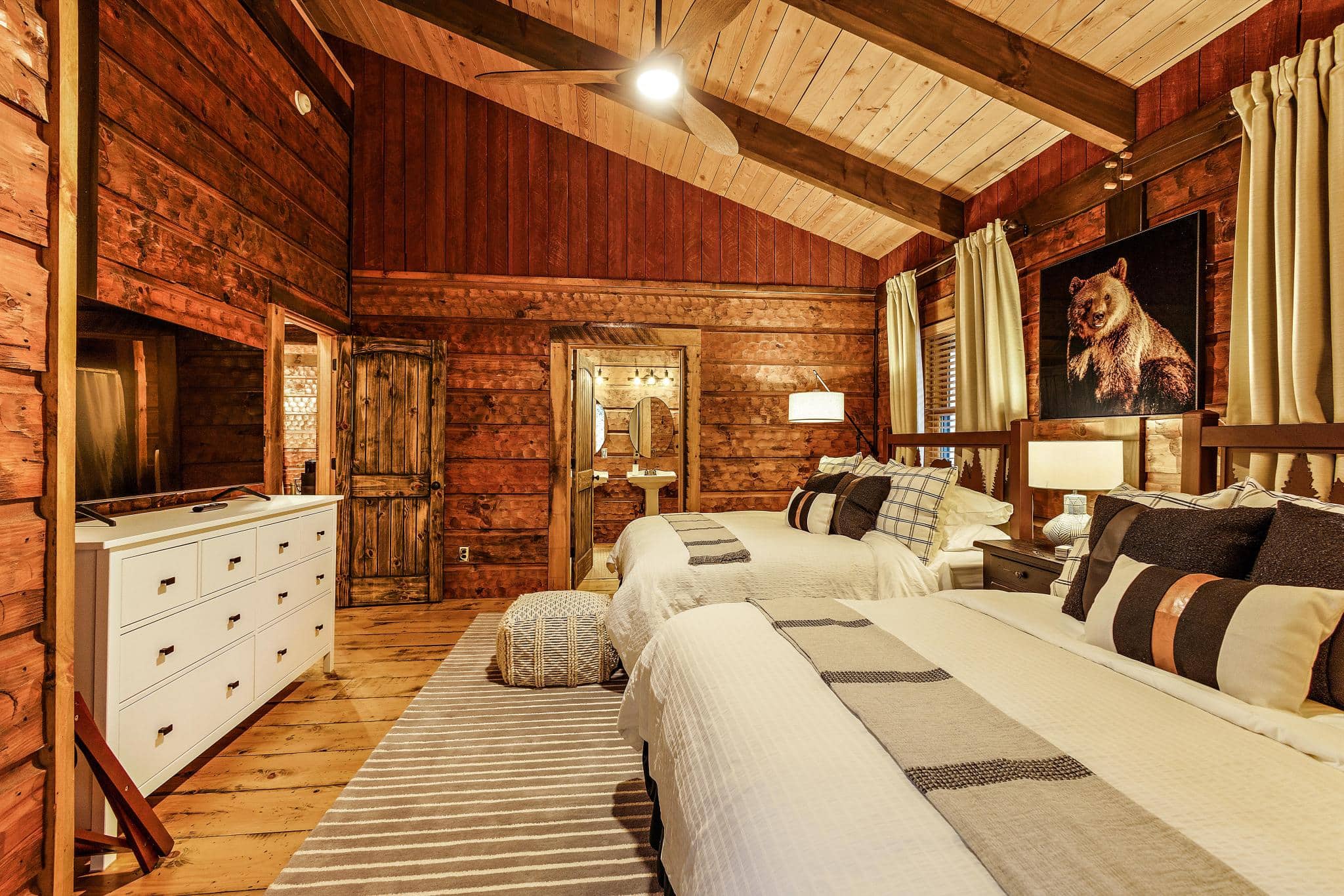 Experience mountain living at its finest in this beautifully crafted log home on a wooded 1 acre homesite in Beech Mountain. Currently operating as a successful, fully-furnished Airbnb, this turnkey property offers an effortless transition for investors, second-home buyers, or those seeking a serene primary residence. The warm and inviting interior features an open floor plan with vaulted ceilings and a dramatic floor-to-ceiling stone wood-burning fireplace as the focal point of the living room. The kitchen is thoughtfully designed with a live-edge wood island countertop, stainless steel appliances, a large copper sink, and high-end finishes throughout, providing both function and mountain lodge charm. The spacious primary suite offers direct access to the back deck and includes a luxurious en-suite bath featuring a freestanding copper soaking tub and double copper vanities. Secondary bedrooms are equally inviting, each with vaulted ceilings and ample space for guests. Outdoor living is where this home truly shines. A stunning second wood-burning fireplace anchors the expansive covered deck, great for gathering, dining, or simply relaxing among the trees. Enjoy the hot tub, porch swing, and multiple seating areas that make this home a year-round retreat. The wooded setting offers privacy and a true mountain escape, while still being convenient to Beech Mountain attractions, skiing, hiking, and shopping. Whether you continue its proven rental performance or keep it as your own getaway, this home offers timeless style, comfort, and an unforgettable setting. Schedule your showing today!