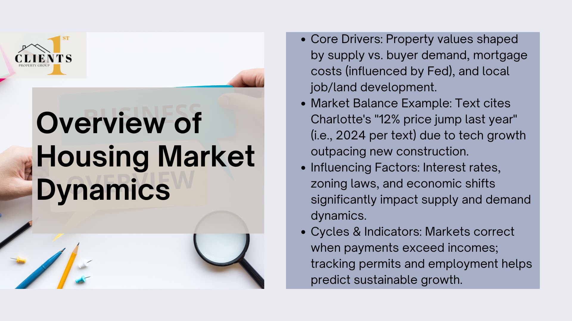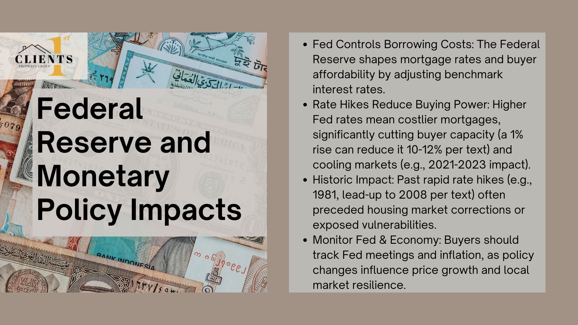 Charlotte-based Clients 1st Property Group (704-622-4865) emphasizes proactive education for buyers and investors. “Recognizing early warning signs helps people make confident decisions,” says their team. This article breaks down key drivers like Federal Reserve policies, employment trends, and regional supply gaps.