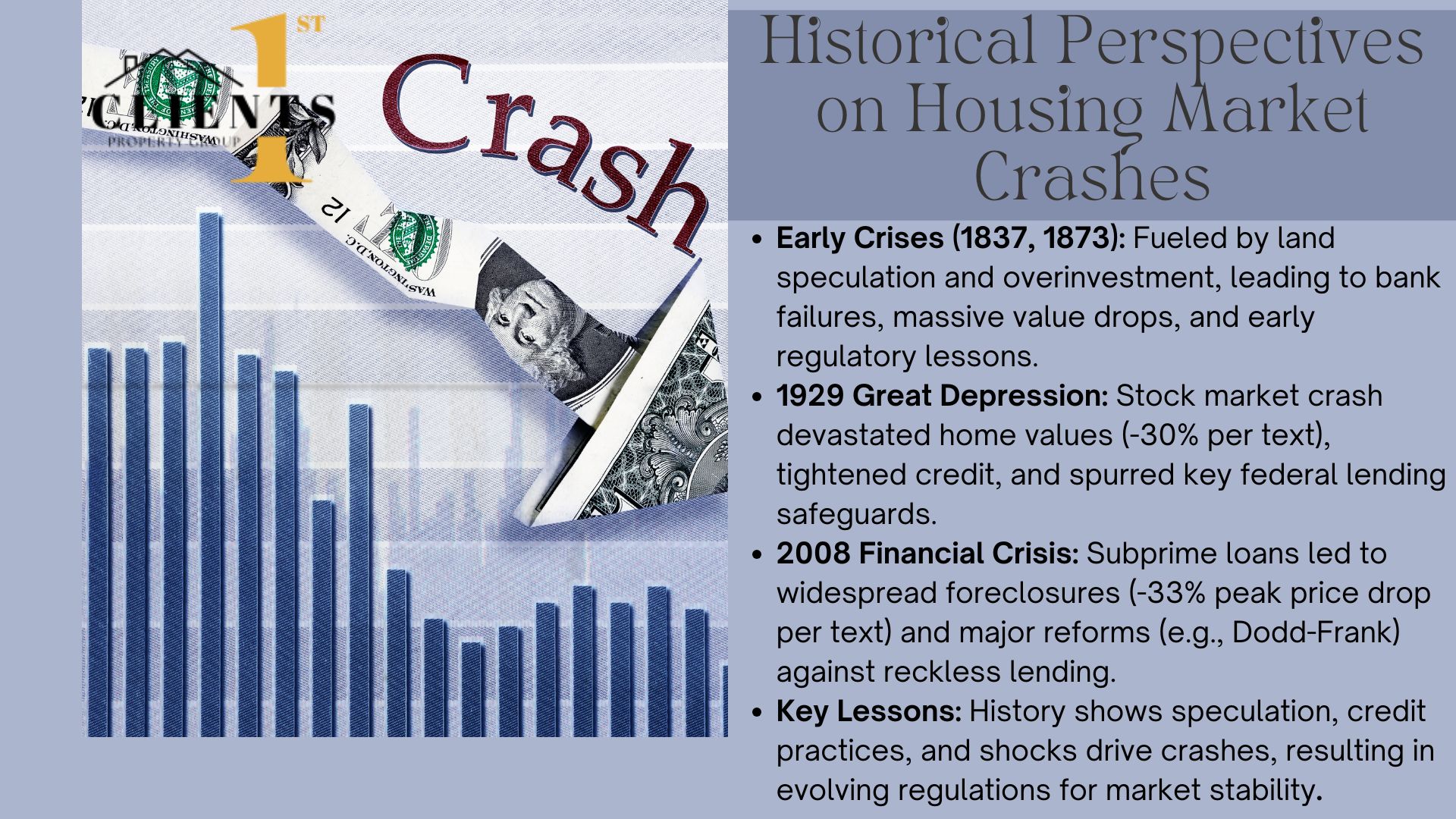 History offers crucial lessons about economic patterns that still shape property decisions today. Four major events reveal how speculation, lending practices, and external shocks create lasting impacts.